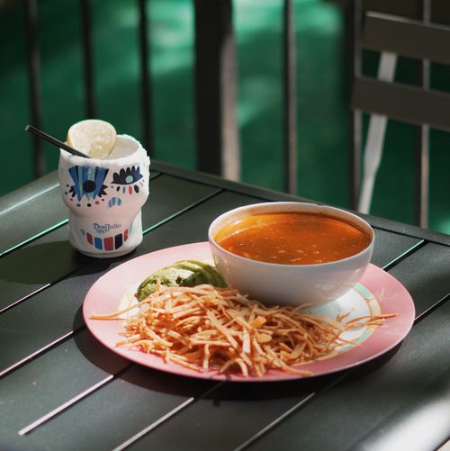 (2-4p) Corn tortilla chips, pinto bean, pico de gallo, cheese, sour cream.