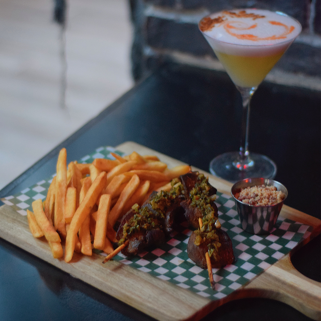 Fried yuca root with in house made pork rinds topped with sarza criolla & ricotto mayo.
